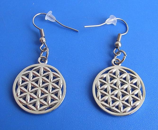 Boucle d'Oreilles Fleur de vie argenté Diametre 2 cm
