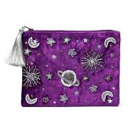 Pochette zippée en velours violet avec galaxie