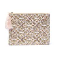 Pochette zippée en velours beige/or avec Fleur de vie