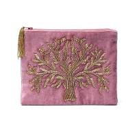 Pochette zippée en velours Rose avec Arbre de vie