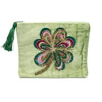 Pochette zippée en velours vert avec trèfle à quatre feuilles